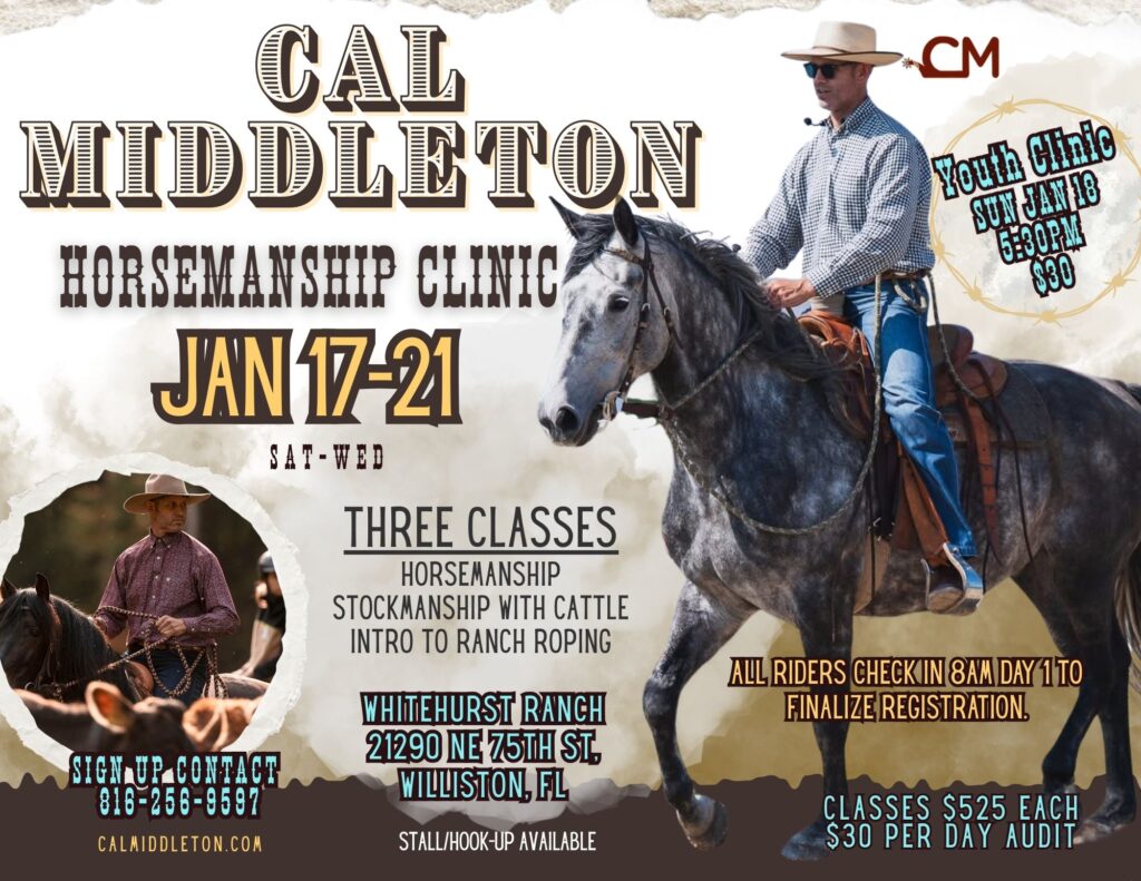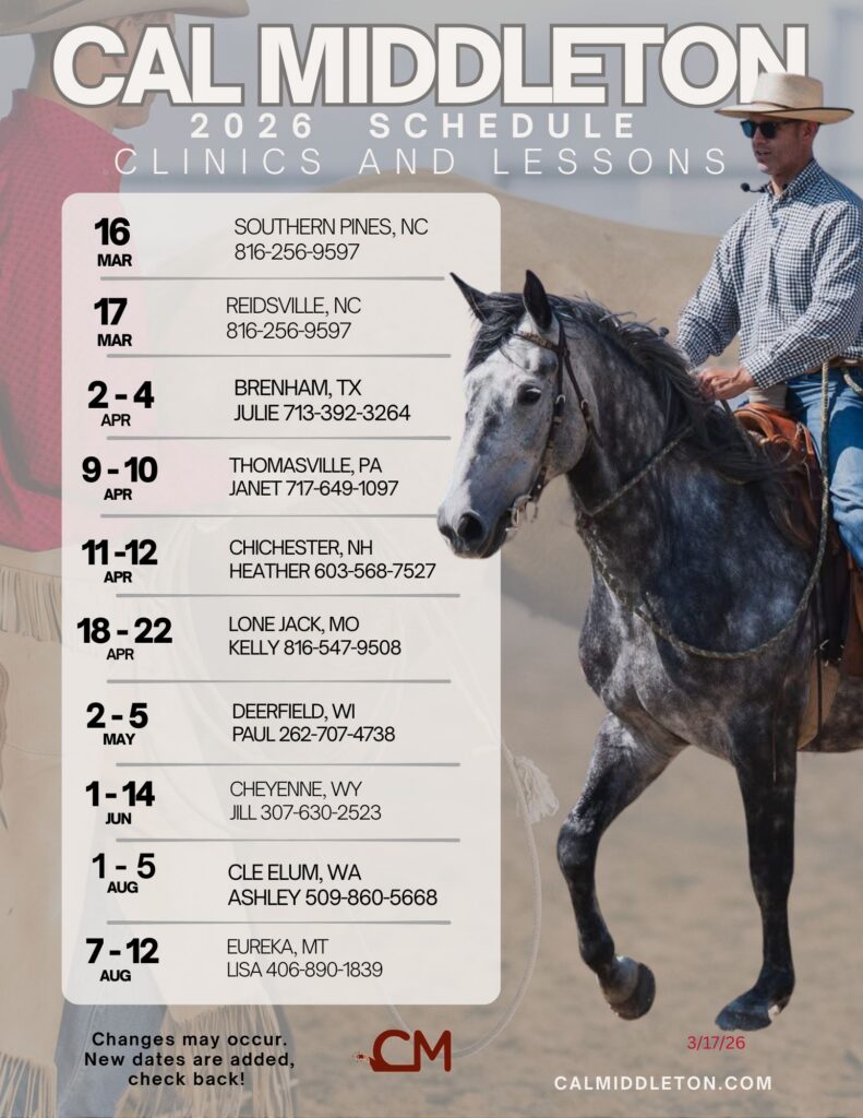 Be sure to "like" and "follow" Cal through out his social network to keep up on the latest happenings at Cal Middleton Performance Horses. Don't miss a second!